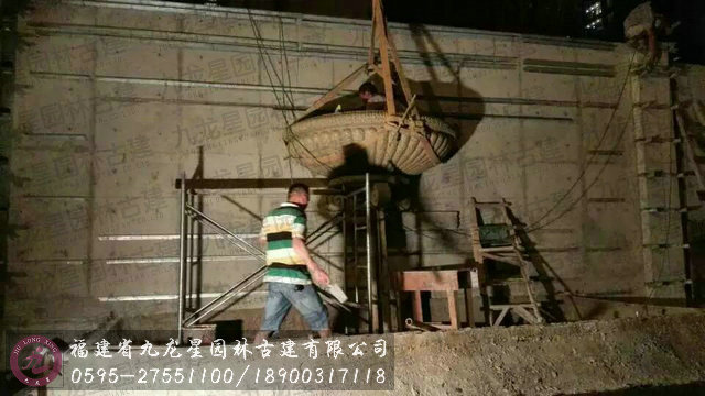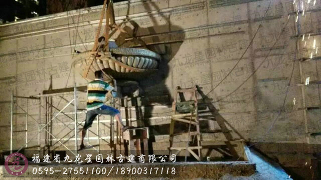 卡麥石雕半壁水缽現場安裝
