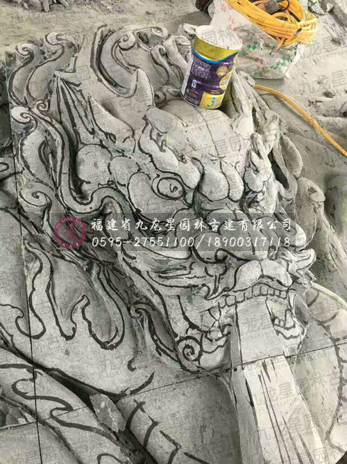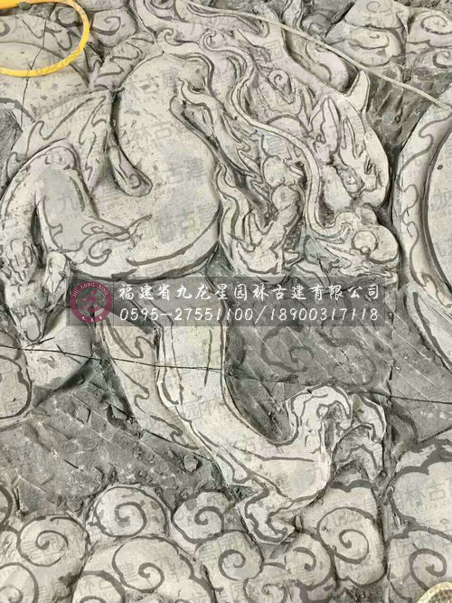 九龍星園林古建石雕九龍壁現(xiàn)場加工圖