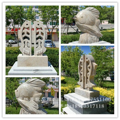在古代的神話傳說中,人們把魚看作是神獸。在中國第一神獸“龍”的形象中,便融入了魚的許多“象生”相,如龍的麟身、尾巴、觸須、腮鰭等。石雕魚是吉祥之物,能預吉兇。因此古代帝王將其視為“瑞應”的象征。《宋書·符瑞志》有:南朝“宋明帝泰始二年,幸華林天淵池,白魚躍入御舟”;“漢章帝元和三年,東駕北巡,有神魚躍出十數”的記載。古人認為魚為河中之精,是帝王受讖的吉瑞隱語。在民間則有“鯉魚跳龍門”的說法,表示仕子科考得中,宦海得到升遷的瑞兆。“魚求子嗣”魚蓮圖中,魚又成了兩性相歡、男女情愛、子孫繁衍的象征物。魚代表男性,蓮代表女性。晉中地區有“魚穿蓮,十七、十八好姻緣”;中原地區有“魚穿蓮,生個娃娃中狀元”的說法。這兩句話,前者有兩性生育繁衍之意,后者有子孫騰達之愿。