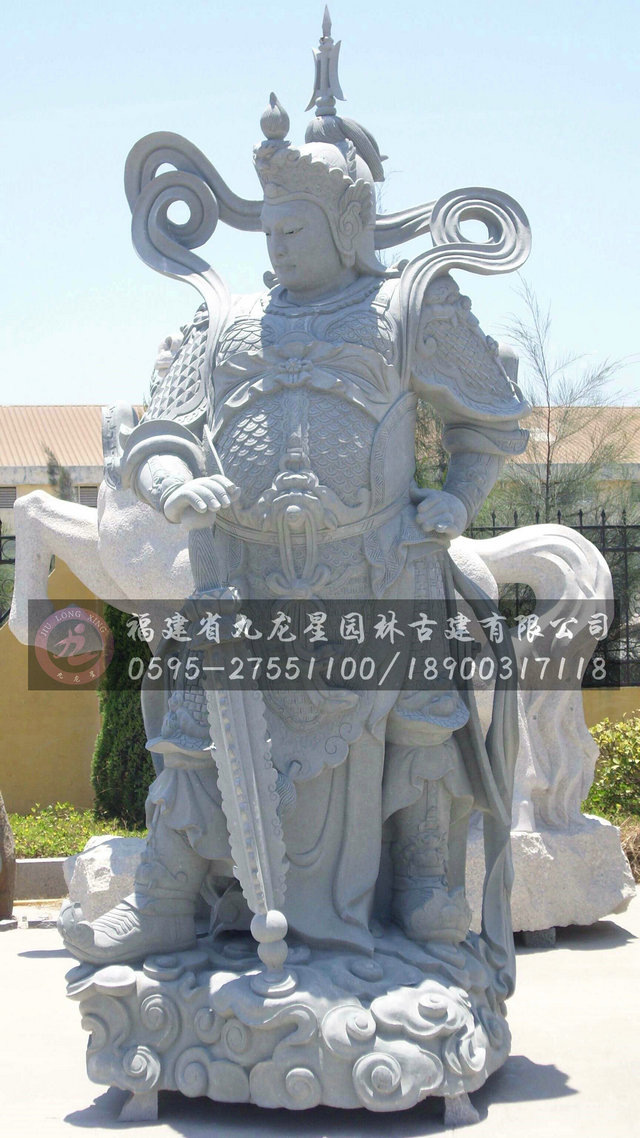 伽藍菩薩:俗稱關公,于三國時期,為一名聞天下之大將。其威武正氣,忠勇義德,誠信質樸之風范流傳千古。尤以桃園結義,千里尋兄等智勇雙全之事跡,最為后世津津樂道。乃具備了以忠事主、以勇立功、以義待人、以德服眾的高尚品格。關羽雖于人道之品格高風亮節,卻因生前殺業太重,死于瞋恨。其英魂游蕩至玉泉山,受普慶大師指點迷津。幾百年后,天臺宗開山祖師智者大師云游至此,為其開示解脫之理,并為其授皈依戒,遂成為佛教護法。也是寺院道場的通稱,佛教伽藍神的代表形象。就狹義而言,指伽藍土地的守護神;廣義而言,泛指所有擁護佛法的諸天善神。依《七佛八菩薩大陀羅尼神咒經》所說,佛教伽藍神是保護伽藍(寺廟)的神。佛說有十八神保護伽藍,即美音、梵音、天鼓、嘆妙、嘆美、摩妙、雷音、師子、妙嘆、梵響、人音、佛奴、頌德、廣目、妙眼、徹聽、徹視、遍視,統稱「十八伽藍神」。 。以伽籃菩薩(關公)形象為代表。