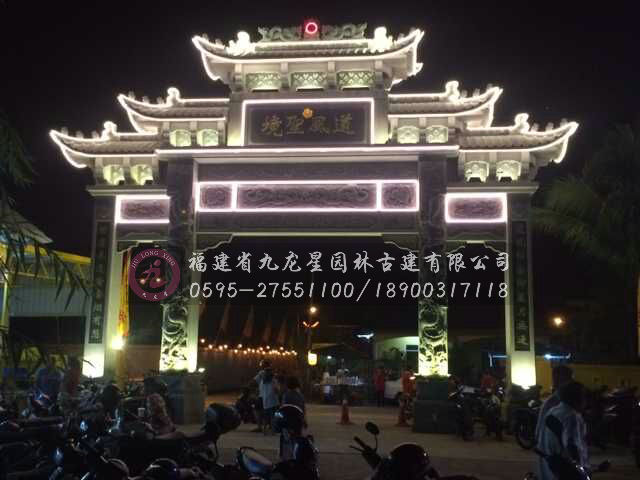 石雕牌坊的造型大氣美觀,結(jié)構(gòu)合理勻稱(chēng),周身雕刻著各種吉祥圖案,代表著我國(guó)的傳統(tǒng)文化,各種吉祥物也反映出人們對(duì)于美好生活的向往。石雕牌坊按照開(kāi)門(mén)數(shù)一般可分為三門(mén)、五門(mén)、七門(mén)。草白玉、青石、漢白玉以及花崗巖這些石材成為制作石雕牌坊的主要石材。牌坊周身布滿浮雕圖 案,雕刻工藝精美細(xì)膩。常見(jiàn)的瑞獸圖案有龍、鳳、麒麟、鹿(諧“祿”)、魚(yú)(諧“余”)等。另外有荷花、牡丹、松鶴、梅蘭竹菊代表著健康長(zhǎng)壽、平安幸福。 石雕牌坊頂部的結(jié)構(gòu)造型主要有坊式和樓式兩種,樓式結(jié)構(gòu)的頂部結(jié)構(gòu)復(fù)雜,斗拱以及樓瓦的配合使得整體氣勢(shì)恢宏。