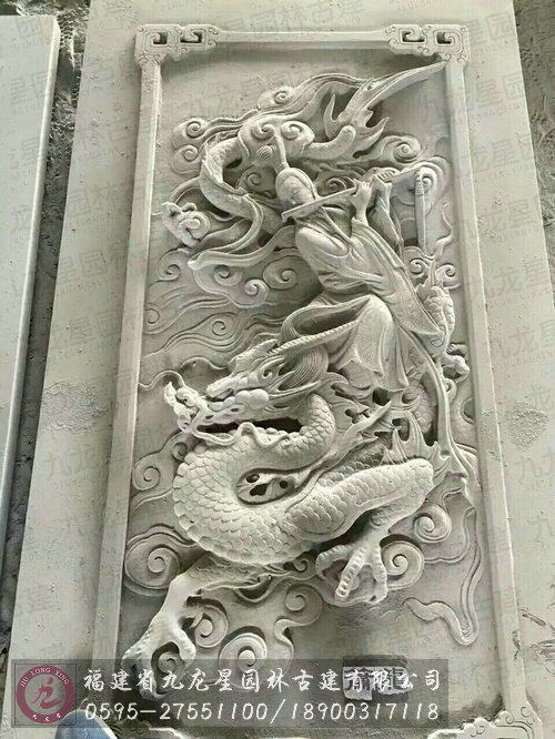 寺廟門(mén)面石材浮雕圖案加工制作選擇九龍星園林古建