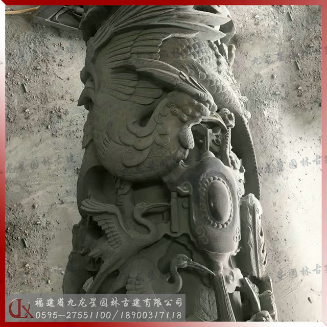 石雕龍鳳柱傳統裝飾石雕用品,適用于宗教寺廟、園林古建、祠堂建筑美化裝飾。福建惠安工藝好的龍鳳柱石雕加工廠選擇九龍星園林古建