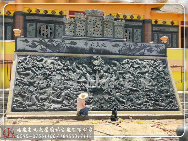 青石石雕屏風雙面雕龍安裝