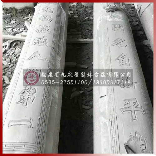 方形圓形石雕對(duì)聯(lián)柱寺院祠堂古建專用由福建省九龍星園林古建有限公司專業(yè)生產(chǎn)加工,我司常年供應(yīng)傳統(tǒng)手工寺廟雕刻精雕龍鳳柱、石雕龍柱、盤(pán)龍柱、華表龍柱、對(duì)聯(lián)柱、廣場(chǎng)文化柱等各種款式石雕柱子。