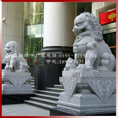 在眾多的名勝古跡區(qū),在高大的辦公樓前,在豪華的住宅區(qū)前,我們常常看見一對或坐或立的石獅子雕塑,雄踞大門門前,威風凜凜,有的把守路橋要囗,氣勢宏偉。