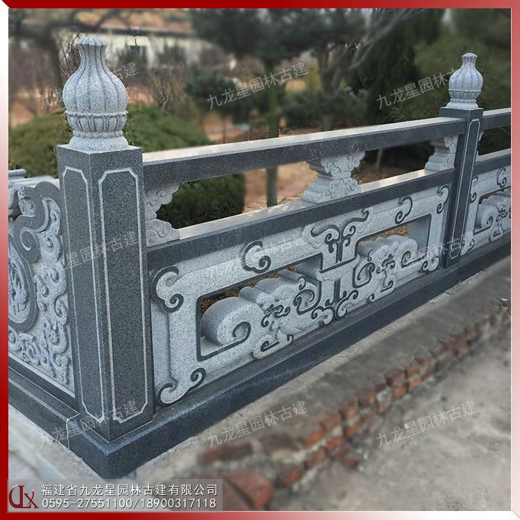 花崗巖河堤石欄桿 池塘石雕防護(hù)欄