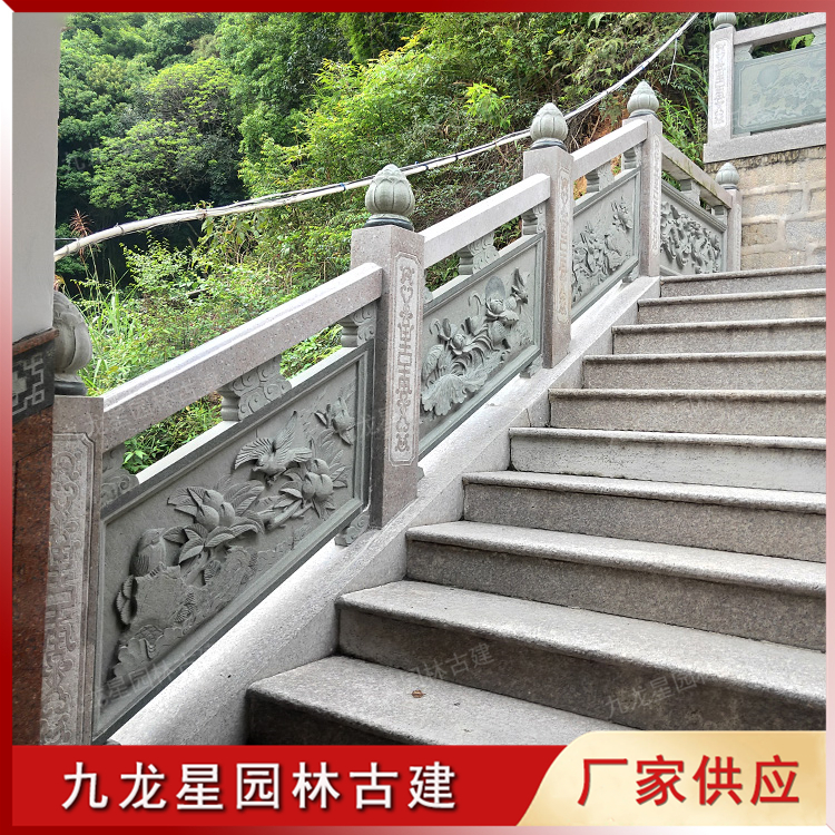 園林古建筑石欄桿具有很好的裝飾作用。石雕欄桿欄板上精美的浮雕圖案讓石欄桿更加的生動,更有觀賞價值。這些豐富多樣的石雕欄桿為園林古建筑的裝飾增強(qiáng)了濃厚的文化氣息。