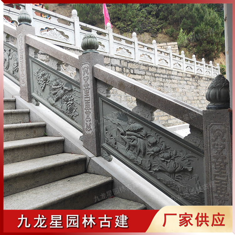 浮雕是園林古建筑石欄桿常見的一種工藝,浮雕工藝主要展示的是一種凸出的立體效果,是更具美感的一種雕刻手法。石欄桿浮雕圖案一般是采用手工雕刻,欄桿的圖案花紋內(nèi)容涉及我們生活中的很多元素,并且還會加入類似一些傳統(tǒng)文化,古代神話等多方面的元素。