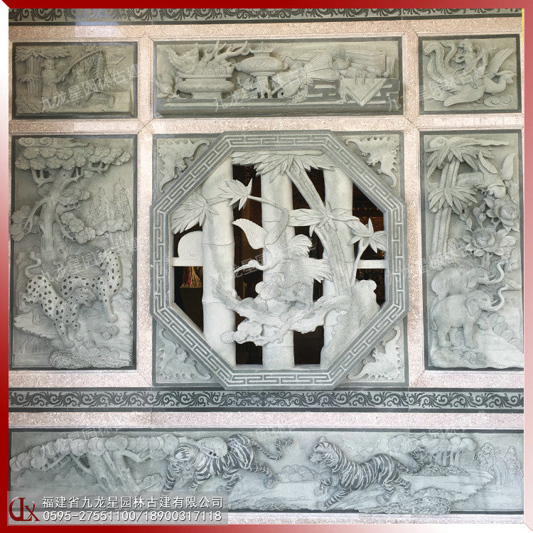 佛教八吉祥 石雕浮雕佛八寶圖案